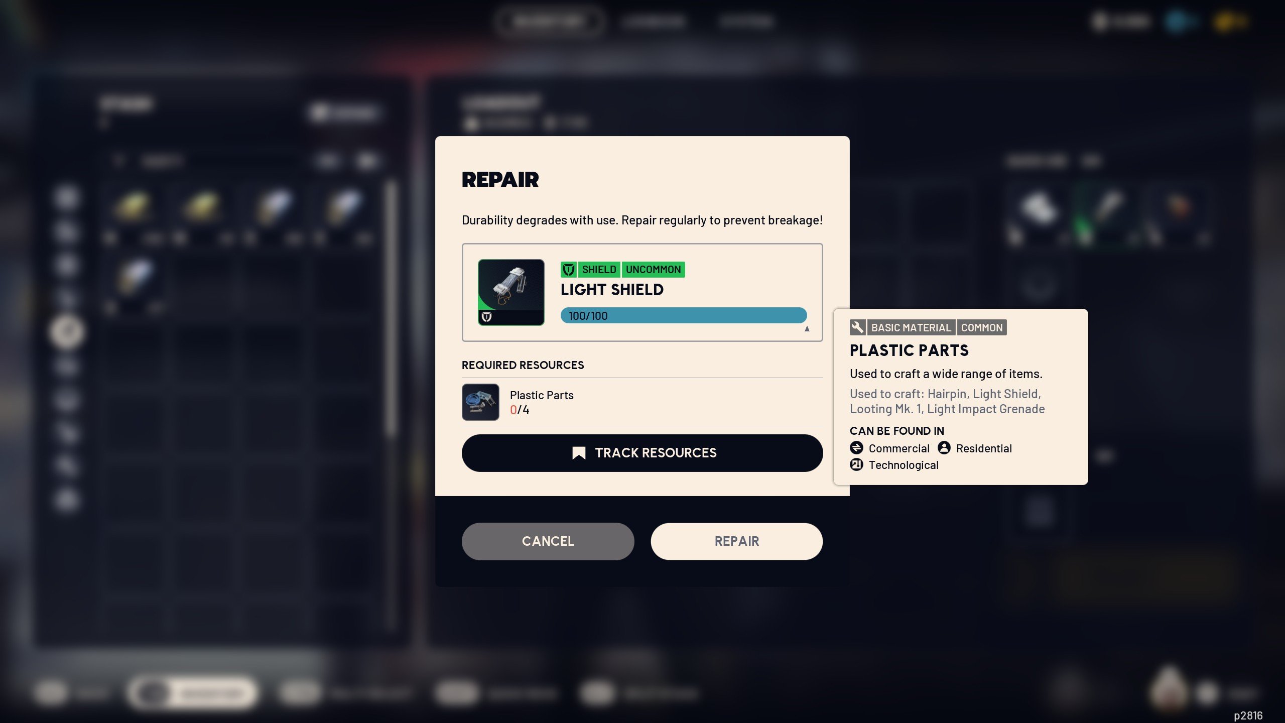 - Track resources for crafting and upgrades: Once you start expanding your Workshop, you can press “Track Resources” on any crafting recipe or upgrade project. This highlights the materials you need during raids, showing icons on loot that match your tracked goals. It’s one of the easiest ways to focus your looting runs and avoid bringing back unnecessary junk.