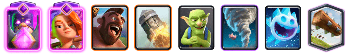 A deck primarily used as a building counter. It also somewhat stabilizes the chaos that’s 2v2. This is another backbone deck in 2v2. You deny buildings, slow the game to make sure you hit the 2x Elixir and create constant Royal Hogs pressure, while letting your opponent play aggressively. Look at the list of one of our Clash Royale 2v2 top decks: