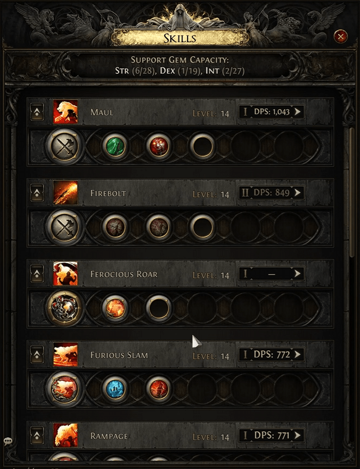 - Ferocious Roar – A warcry meta gem that shifts you into bear form, generates rage, and empowers your next attacks to break armour. You can also socket human warcries into it to trigger those instead.