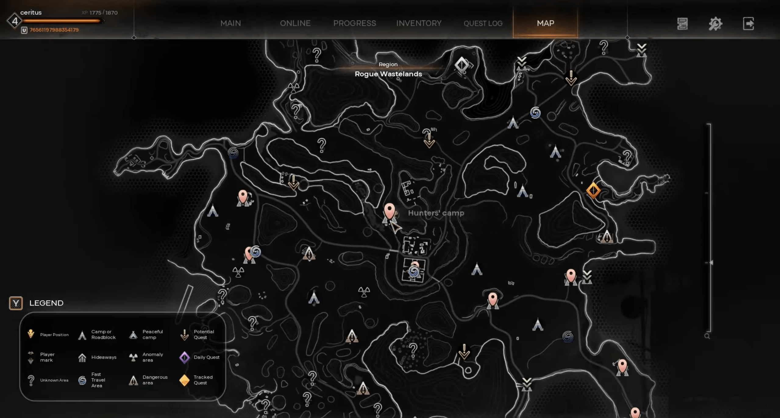 - Tracked Quest: Quest-related objectives that can be tracked on the map, showing where to go or what to complete next.
