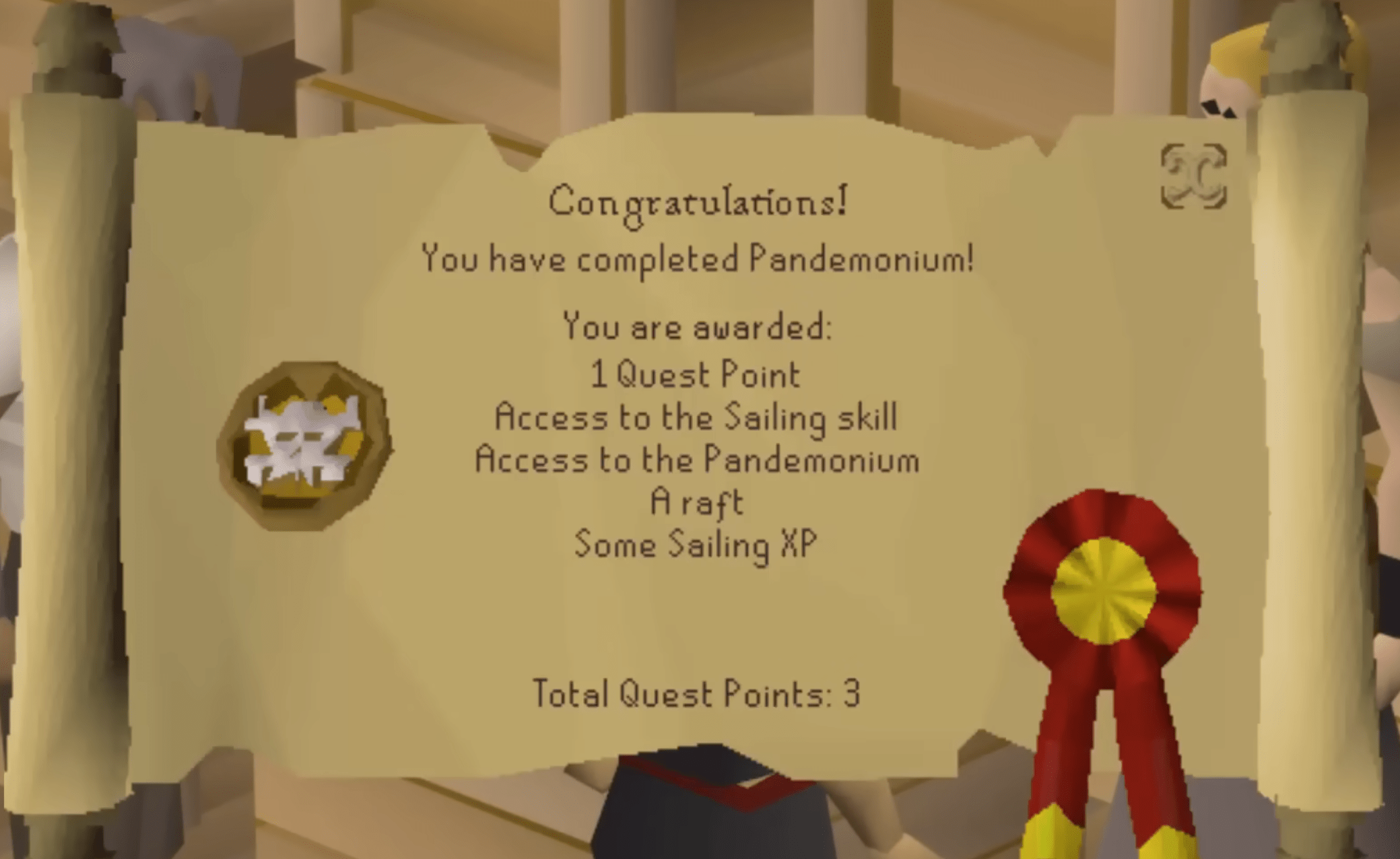 The rewards for finishing Pandemonium are straightforward but important: you unlock access to the Sailing skill itself, gain your own raft as a permanent ship, receive the Captain’s log for tracking sea OSRS sailing charting tasks, and get a small bundle of starter items including Sailing experience, sawmill coupons, repair kits, and a spyglass. You also gain permanent access to The Pandemonium as an ocean hub. BLOG20
