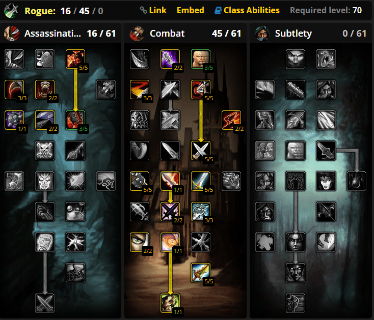 It’s not that Assassination and Subtlety specs are useless; it’s just that you will see a lot more Combat Rogue builds anywhere you look. Since you came here to see the best builds, I’ll give you one for PvE and one for PvP, and they’ll be more than enough. But just know that you should pick the Combat spec if you want to get into raids.