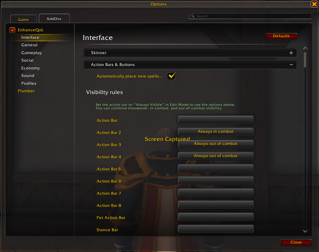 For example, you can hide individual action bars and have them display under certain conditions. For example, I’ve added two custom action bars for my emotes (for social interaction and some light RP) and utility stuff like my mount, hearthstone, transmog window (which is another addon feature), etc. But I don’t need to see them during combat, so I made them disappear when combat starts.