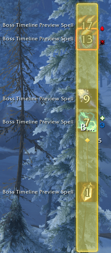 Take a look at the Boss Timeline from the Boss Warnings set of elements. A vertical line that shows what the boss cast, how, and when. The left side of the screen is where most players put their party-in-raid screens. The Boss Warnings themselves are at the top center of the screen. Critical warning - should be closer to the middle of the screen, but it's the furthest.