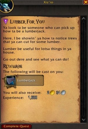 - Pick up the quest Lumber For You.