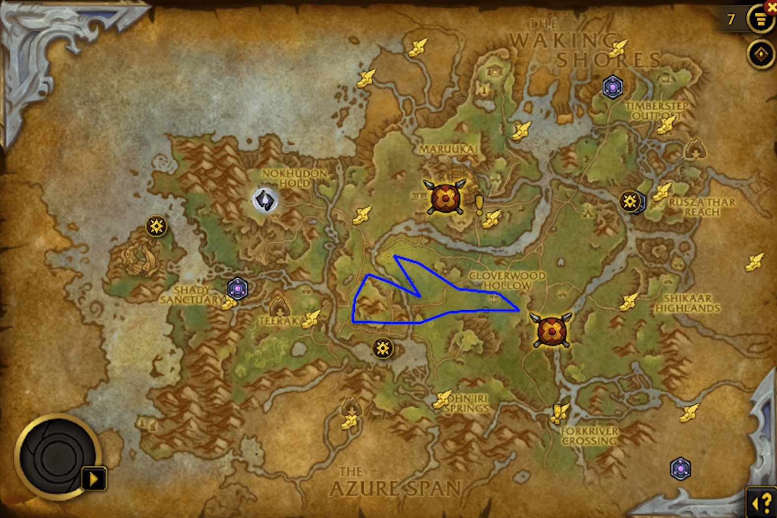 - Nazmir’s terrain is forgiving, allowing both steady flying and druid travel form to shine.
