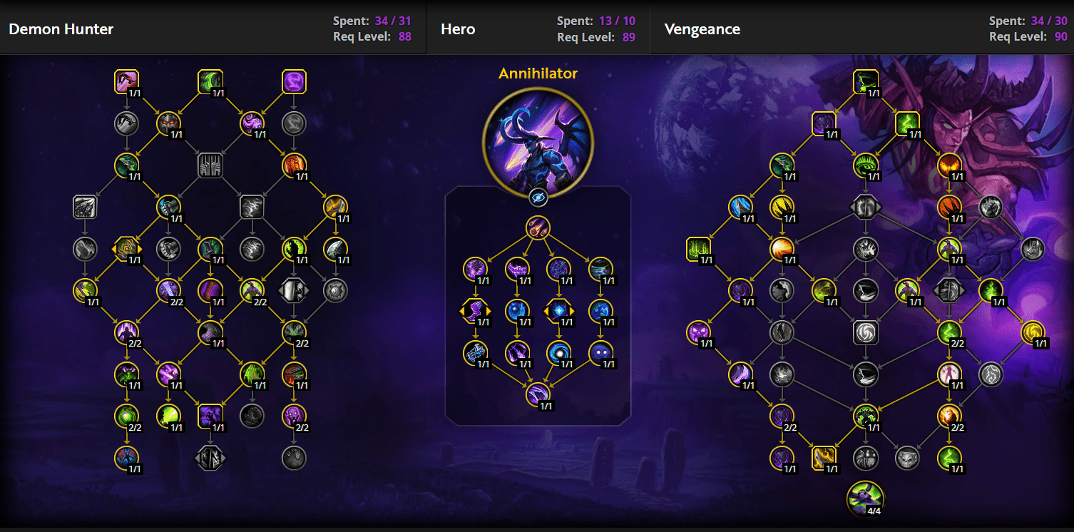 This guide focuses mainly on Raid content, and thus it’s only logical that I’ll provide the best Demon Hunter builds in Midnight for raids specifically. The builds are pretty easy to follow, and I’ll shortly explain the gameplay loop of each of them. Let’s start with Havoc Fel-Scarred DH.