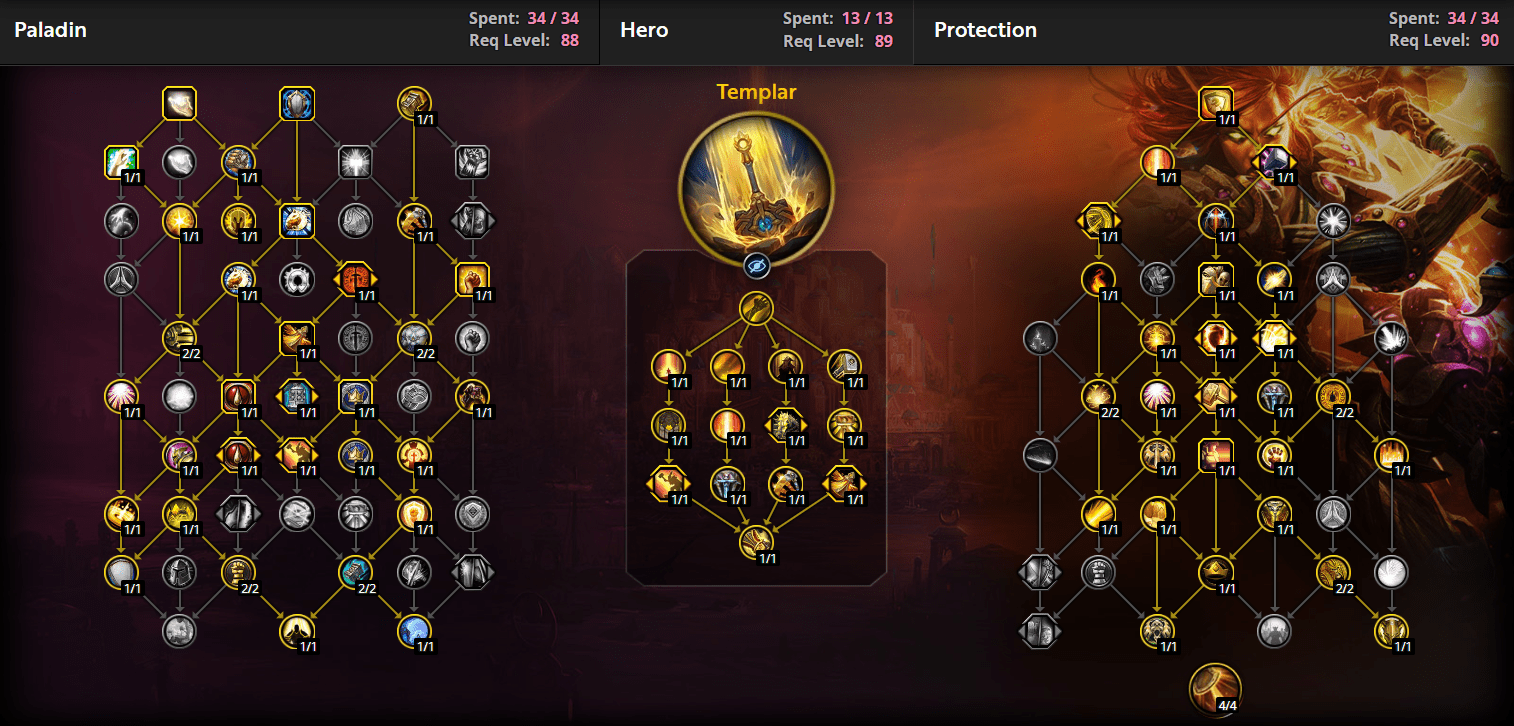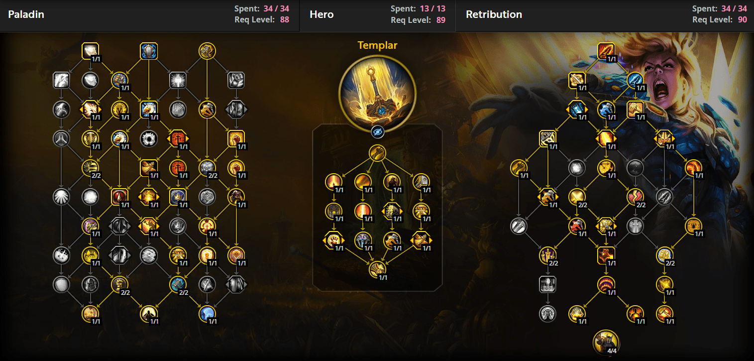 A little disclaimer: these builds are for Raids, not for Mythic+ dungeons. Thankfully, you can easily redistribute your allocated points to fit the content you’re planning to play. From the three builds I provide here, the Holy and Protection builds work the best in this patch, as Retribution is quite weak even with the proper build. I’ll show it first and then move on to the other two.