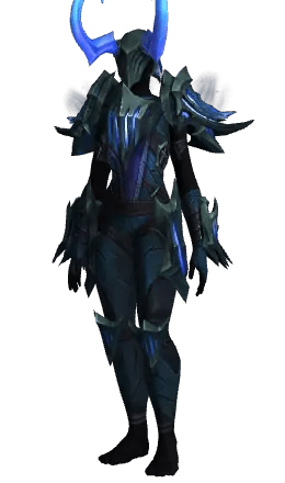 Devouring Reaver's Sheathe is a Demon Hunter's animalistic form. The first thing you notice is the helmet’s horns bent backwards, which remind you of the Illidan horns. Another highlight is the shoulderpads that look like some kind of soul prison. The iron-cast bar contains some kind of energy, and you can even spot an occasional skull flying out as if some souls manage to slip out. That seems very Demon Hunter-like.