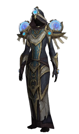 The Voidbreaker's Accordance set looks like a very classic mage-theme armor. What makes it so “mage-y”? The huge magical orbs spinning around on the shoulders, runes all over the armor, and some kind of artifact on the forehead of the cape. I like it a lot, but if you wanted something unique for a mage to wear, your best bet is still the custom transmog.