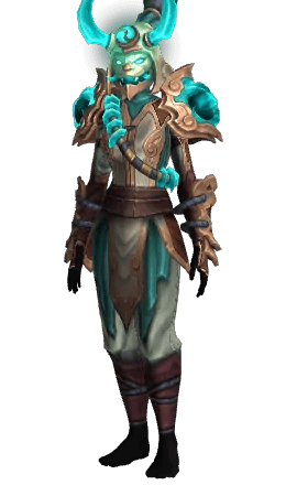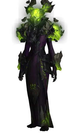 For Warlocks, the Reign of the Abyssal Immolator set barely contains the fel magic. It's just Fel Unchained. The set features a full demon mask helmet, runes, and lots of chains as if you were a Fel demon locked in your own body who is just starting to break free. There are a lot of fractures and cracks all over the armor as if your inner demon is about to jump out and break free.
