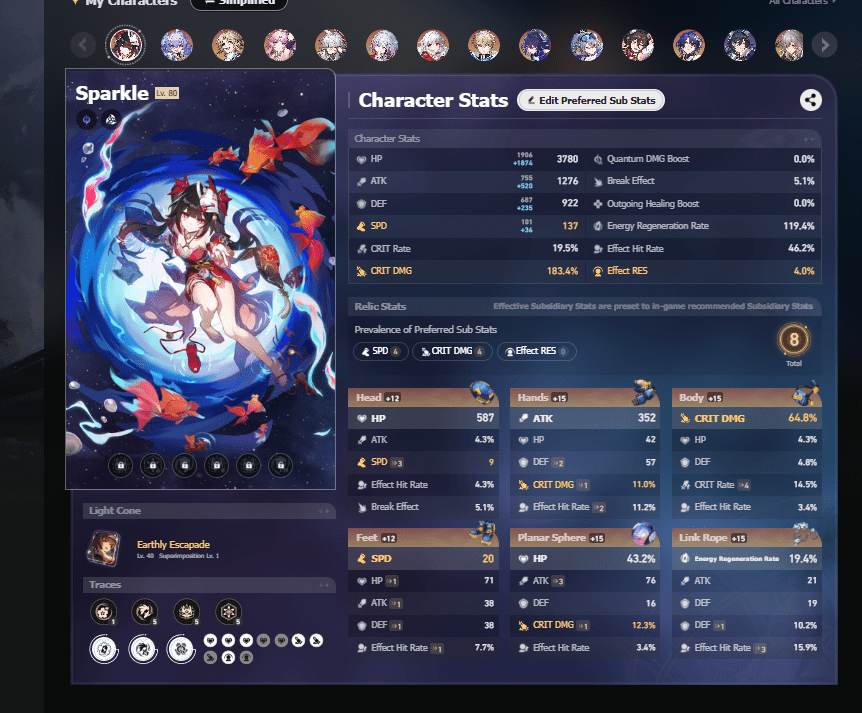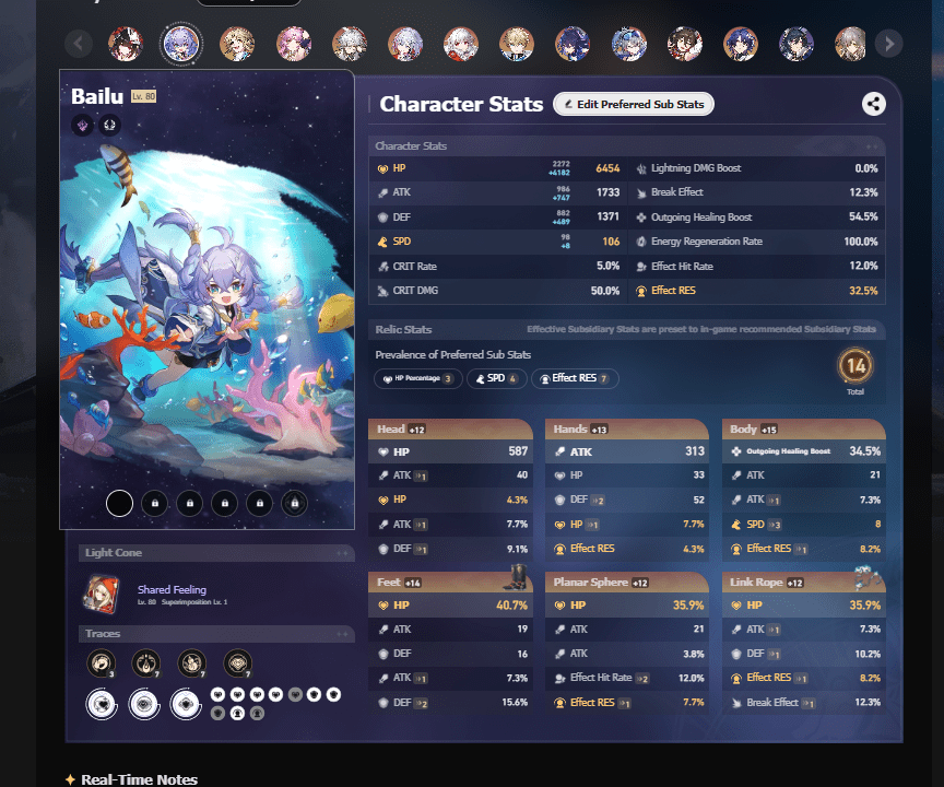 5⭐️: Bailu=E1, Yanqing=E1, Gepard=E1, Seele=E1, Sparkle=E0, Fu Xuan=E0, Jing Yuan=E0, Topaz & Numby=E0, Clara=E0, Silver Wolf=E0, Dr. Ratio=E0, Himeko=E0, Robin=E0, Trailblazer=E6