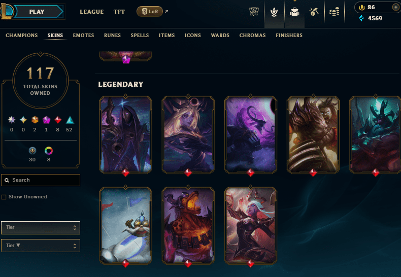 Can I find accounts with specific skins?