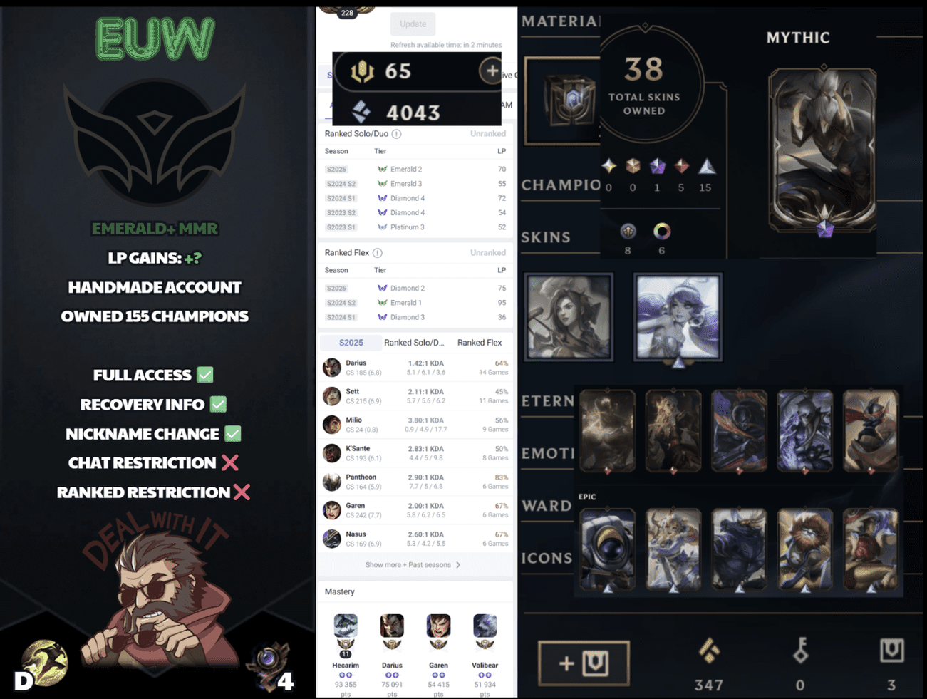 I was super skeptical at first because, letโs be real, buying accounts online isnโt always safe. But this place is solid. Account came through immediately, all skins and items were exactly as shown. Feels good to get what I actually paid for!