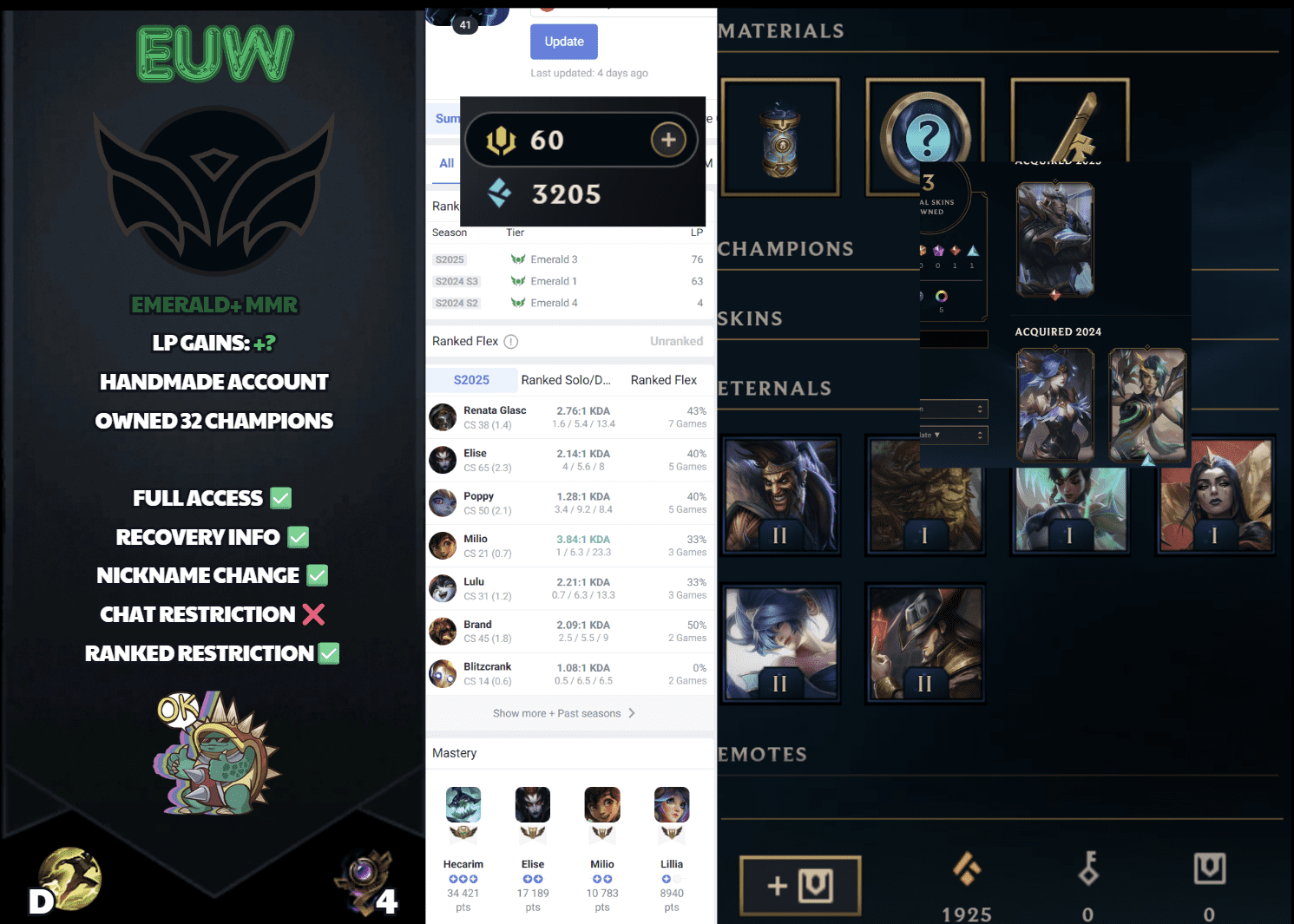I was super skeptical at first because, letโs be real, buying accounts online isnโt always safe. But this place is solid. Account came through immediately, all skins and items were exactly as shown. Feels good to get what I actually paid for!