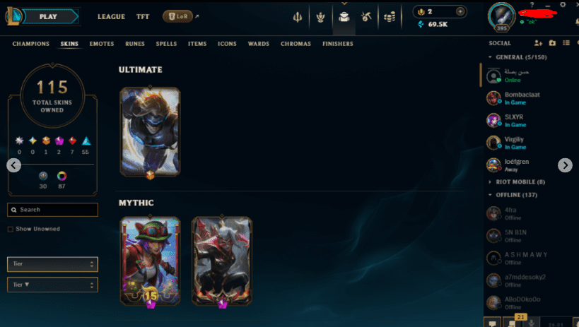 Can I find accounts with specific skins?