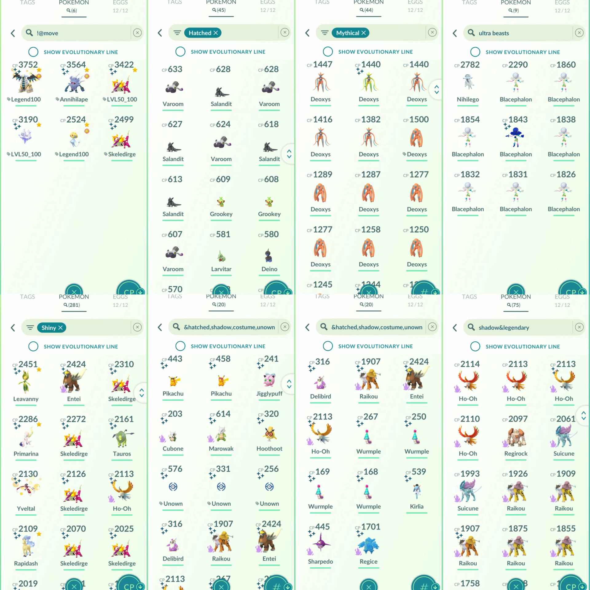 -Shiny Hatched + Shadow + Costume + Unown: 2