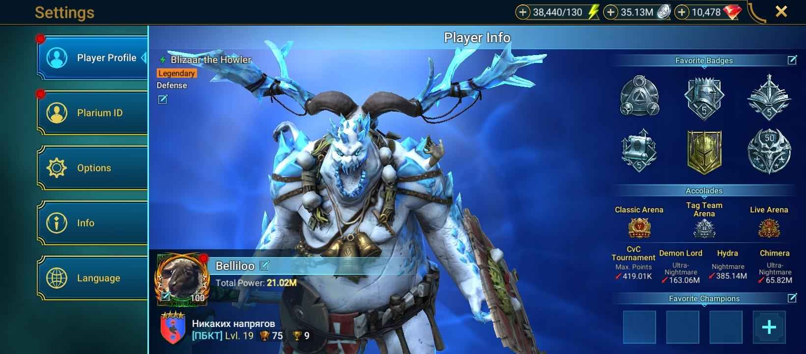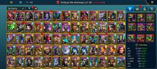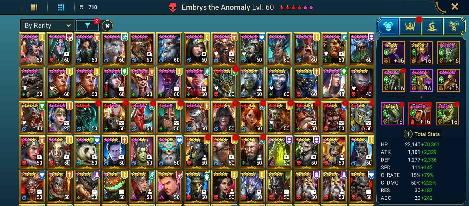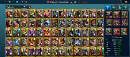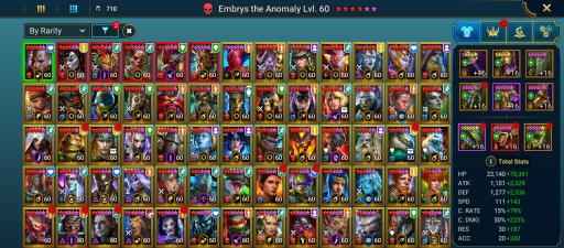 100 lvl account / 21,02M Power / 232 legendary , 6 mythic , 365 epic champions / 35M Silver / 10K Gems / 38k Energy
