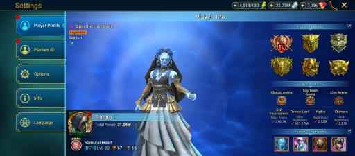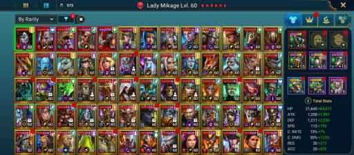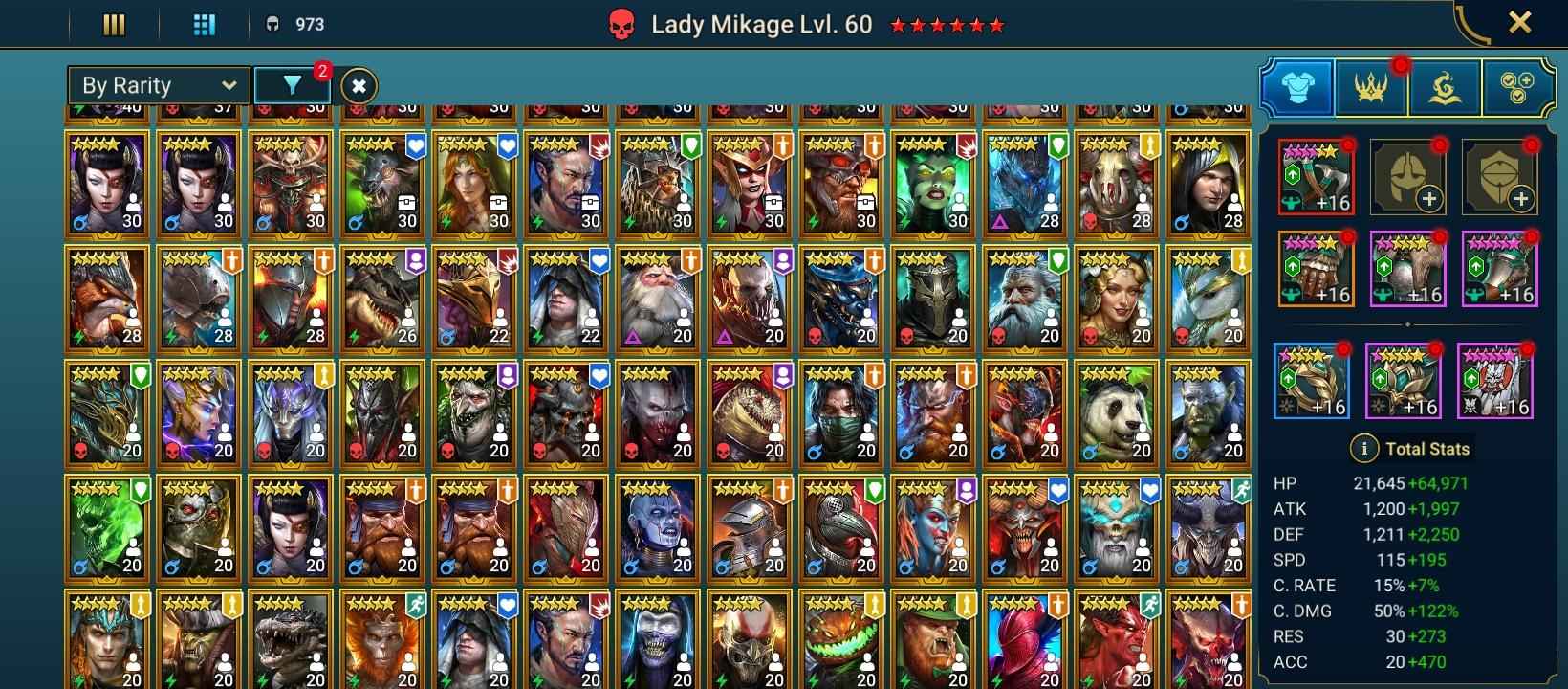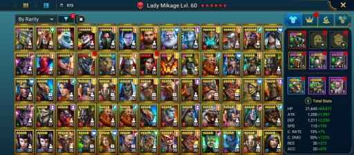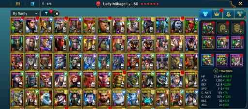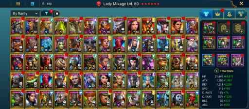 100 lvl account / 21,04M Power / 276 legendary , 5 mythic , 544 epic champions / 21M Silver / 7K Gems / 4k Energy