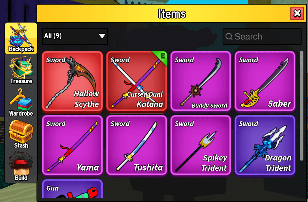 ⚔️Swords: Cursed Dual Katana, Hallow Scythe, Buddy Sword, Spikey Trident, Yama, Tushita, Saber, Dragon Trident