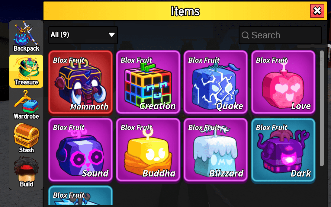 🍇Fruits in inventory: Mammoth, Buddha, Creation, Love, Blizzard, Quake, Sound