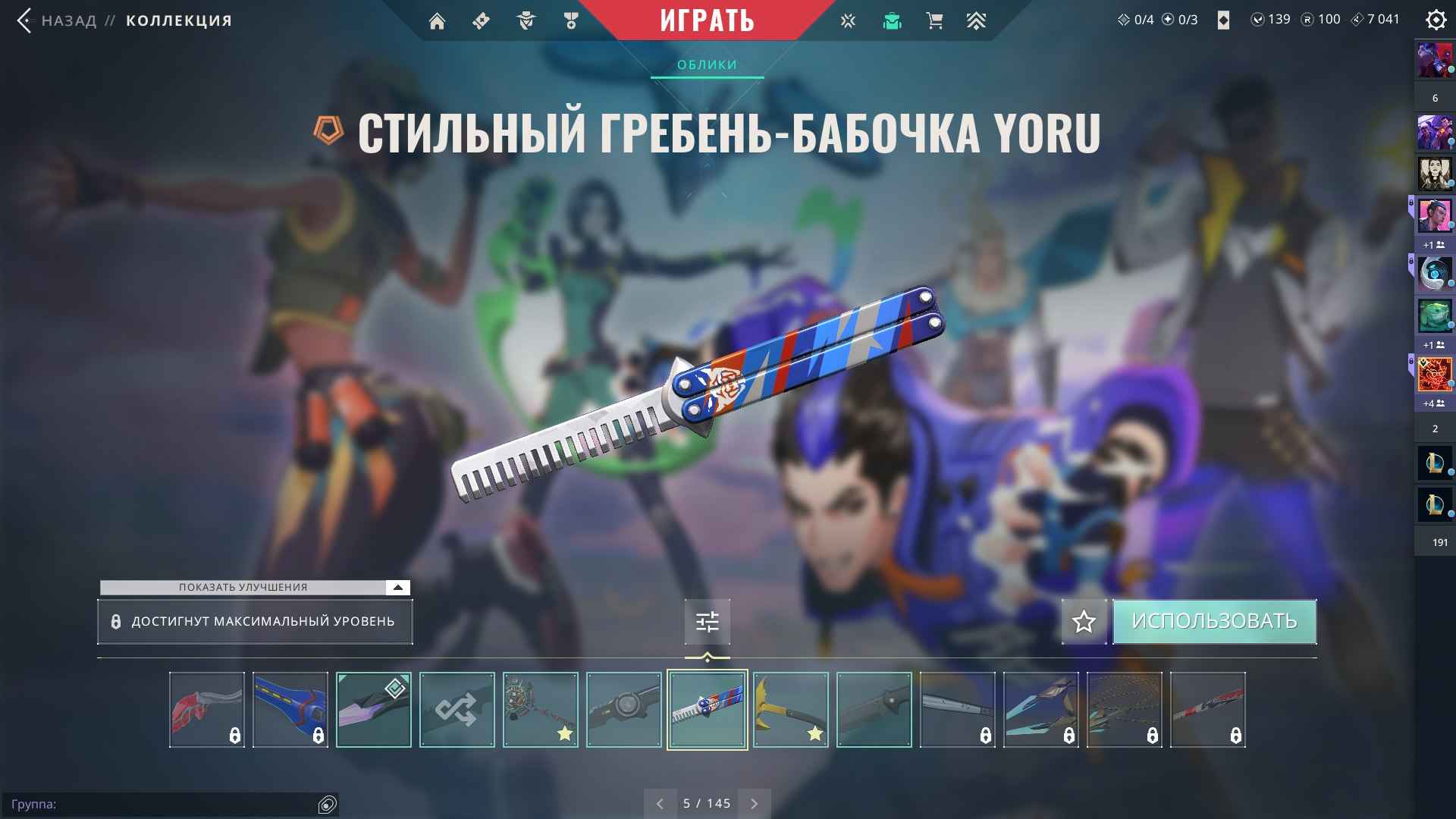 Skins: Yoru's Stylish Butterfly Comb, Overdrive Sheriff, Glitchpop Classic, Obsidiana, Singularity Ghost, Glitchpop Vandal, Task Force 809 Knife, Champions 2022 Phantom, Prism III Axe, Singularity Butterfly Knife, Singularity Vandal, Xenohunter Bucky, Ion Spectre, Oni Phantom, Bubble Pop Classic, Task Force 809 Phantom, Piedra del Sol Judge, Piedra del Sol Ghost, Songsteel Classic, Songsteel Guardian, Cavalier Vandal, Cavalier Ghost, Task Force 809 Marshal, Cavalier Stinger, Task Force 809 Spectre, Cavalier Bucky, Overlay Sheriff, Cavalier Operator, Piedra del Sol Bucky, Piedra del Sol Phantom, Songsteel Marshal, Task Force 809 Frenzy, Snakebite Shorty, Shimmer Classic, Immortalized Sheriff, Live Wire Frenzy, Prism III Classic, Depths Ghost, Lightwave Bucky, Premiere Collision Bulldog, Lightwave Sheriff, Game Over Sheriff, Immortalized Guardian, Lightwave Odin, POLYfrog Spectre, Prism III Judge, Spitfire Operator, Premiere Collision Classic, Premiere Collision Ares, Death Wish Sheriff, Prism III Odin, Spitfire Ghost, Shimmer Judge, Immortalized Vandal, Depths Bulldog, Wunderkind Shorty, Shimmer Bulldog, Spitfire Ares, Striker Classic, Premiere Collision Marshal, Nanobreak Sheriff, POLYfrog Marshal, Lightwave Phantom, Depths Stinger, POLYfrog Ares, Shimmer Stinger, Karabasan Shorty, Immortalized Stinger, POLYfrog Sheriff, Spitfire Guardian