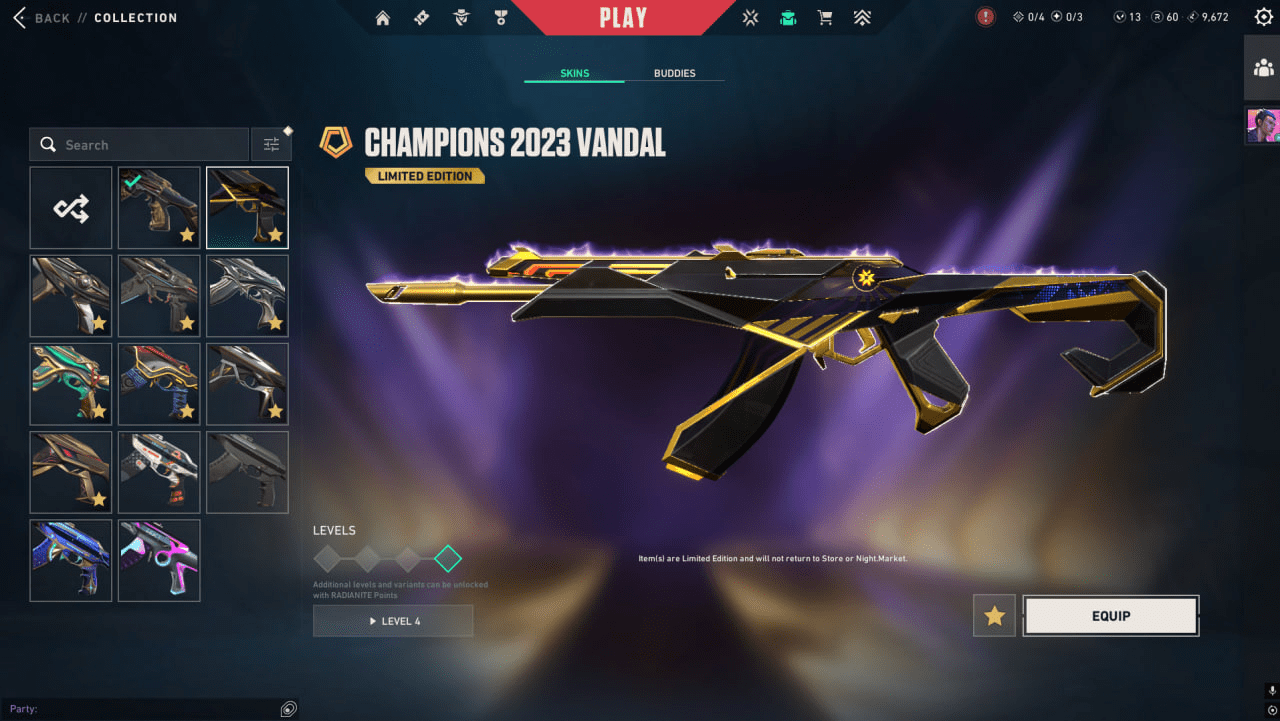 Ion Karambit, Blades of Imperium, Champions 2023 Vandal, Phaseguard Ghost, Imperium Operator, Ruination Phantom, RGX 11z Pro Phantom, Imperium Sheriff, Imperium Judge, Sentinels of Light Vandal, ChronoVoid Vandal, Imperium Vandal, Sentinels of Light Operator, Araxys Operator, Oni Vandal, Gaia's Vengeance Marshal, XERØFANG Vandal , Ion Sheriff, Aemondir Vandal, Cryostasis Vandal, Forsaken Vandal, Iridian Thorn Sheriff, Transition Knife, Game Over Sheriff, Freehand Odin, Topotek Ghost, Tilde Bulldog, Freehand Marshal, Signature Stinger, Topotek Odin, Freehand Ghost, ATLAS // CMD Classic, Tilde Knife, Iridian Thorn Judge, Bound Judge, VCT LOCK//IN Misericórdia, Tilde Shorty, Topotek Phantom, Tilde Operator, Starlit Odyssey Spectre, Monstrocity Ares, Bound Phantom, 9 Lives Classic, Digihex Ghost, Transition Bulldog, Retrowave Sheriff, Panoramic Bucky, Rune StoneOdin, Overlay Sheriff, Signature Guardian, Panoramic Guardian, Transition Stinger, Panoramic Classic, Sandswept Sheriff, Monstrocity Spectre, Solarex Sheriff, Fiber Optic Ghost, Rune Stone Marshal, Moondash Guardian, Iridian Thorn Bucky, Monstrocity Vandal, Signature Marshal, RDVR Phantom, Transition Shorty, Bound Classic, Rune Stone Bulldog, Starlit Odyssey Guardian, Monstrocity Sheriff, Bound , Bound Bulldog, Moondash Stinger, Moondash Marshal, Tilde Judge, Transition Vandal, Freehand Spectre, Comet Ghost, Topotek Bucky, Rune Stone Shorty, Signature Sheriff, Pistolinha Classic, Starlit Odyssey Vandal, Moondash Frenzy, Bubble Pop Classic