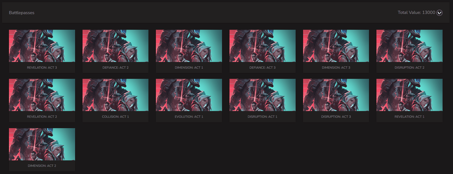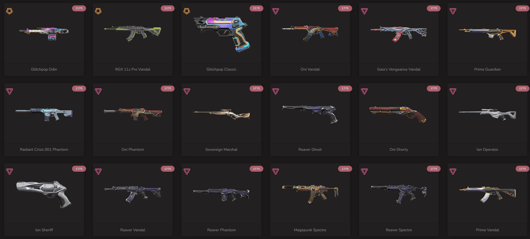 Fat account with the rare Fist bump buddy and 20 Premium skins including : Oni Vandal, Gaia's Vengeance Vandal, Prime Guardian, Radiant Crisis 001 Phantom, Oni Phantom, Sovereign Marshal, Reaver Ghost, Oni Shorty, Ion Operator, Ion Sheriff, Reaver Vandal, Reaver Phantom, Magepunk Spectre, Reaver Spectre, Prime Vandal, Reaver Odin, Neptune Vandal, Ion Vandal, Forsaken Vandal, Ion Phantom and 15+ Exclusive editions like: Reaver Karambit, VALORANT GO! Vol. 1 Knife, Gaia's Fury, Xenohunter Knife, Sovereign Sword, Araxys Vandal, Prelude to Chaos Vandal, Glitchpop Vandal, Ruination Ghost, Glitchpop Frenzy, Sentinels of Light Vandal, Singularity Ares, Glitchpop Odin, RGX 11z Pro Vandal, Glitchpop Classic, Account includes 442 Buddies and 23 Agents and has 314 Sprays, 330 Cards, 153 Titles and Region is EU and has 224 Weapon skins.